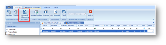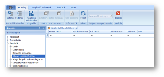 Az alacsonykészlet kezelés támogatására készült a funkció, melynél a menüsorban található Betöltés vagy Feltöltés ikonra nyomva indítható el az igény.