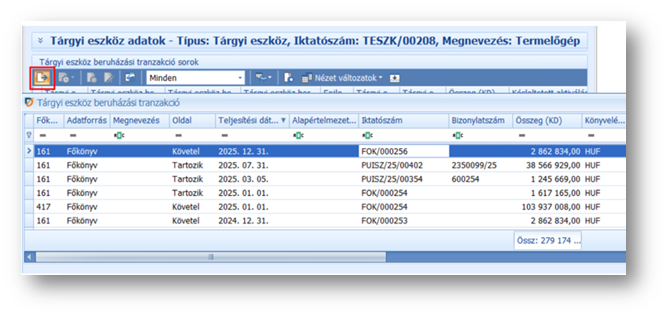 - több tranzakció sort kiválasztani, és ezeket a tárgyi eszköz kartonhoz rendelni. Ebben az esetben a választott sorok szumma értéke fogja a tárgyi eszköz értékét képezni.