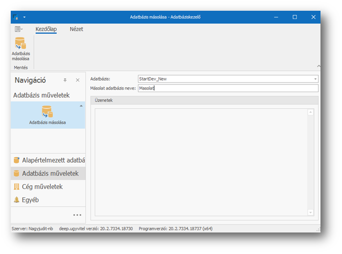 A menü sorban válasszuk ki az „Adatbázis másolása” műveletet, majd a másolási szándékot erősítsük meg a feljövő ablakban.