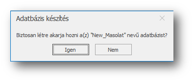 A menü sorban válasszuk ki az „Adatbázis létrehozása” műveletet, majd a létrehozási szándékot erősítsük meg a feljövő ablakban.