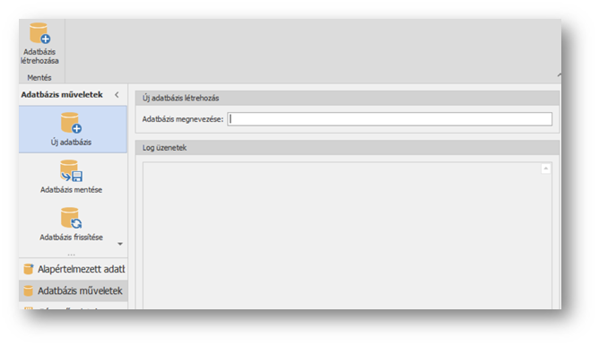 A megnyíló deep.ugyvitel.dbmanager program bal oldali navigációs ablakában az „Adatbázis műveletek” menü alatt válasszuk ki az „Új adatbázis” menüpontot.