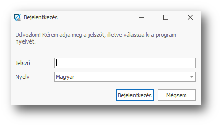 A megjelenő „Bejelentkezés” ablakban a jelszó megadása (Alapértelmezetten nincs jelszó, módosítása a Beállításokban végezhető el) és a dbmanager nyelvének (Magyar, English) kiválasztása után nyomjuk meg a „Bejelentkezés” gombot.