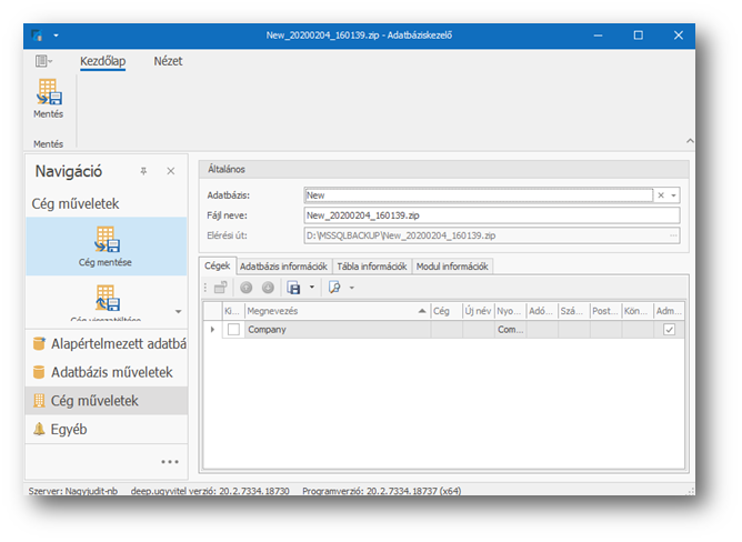 Ezzel megtörtént a cég mentés és létrejött a megadott helyre és néven a *.zip fájl.