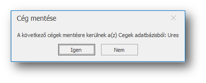 A kiválasztott adatbázisból törölhetjük ki az általunk kiválasztott céget. A cég törlése fizikai törlés, ha nem volt előtte mentésünk, akkor a cég törlésével, minden adatunk elveszik.