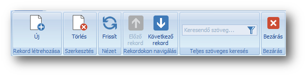 | Új: | új rögzítése esetén megjelenik az adatbevitelre alkalmas felület. |