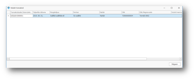 | Törlés: | olyan rekord törölhető, amire még nincs hivatkozás. Kereskedelmi tranzakciós bevitelekben csak a "Rögzítés alatt" státuszú bizonylat törölhető. |