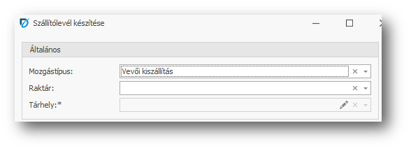 | Szállítólevél készítése: | Vevői rendelésből indításkor megjelenik a Nyitott mennyiségekből / Foglalt mennyiségekből választás is. A művelet segítségével egyszerűen szállítólevelet készíthetünk azokból a bizonylatokból, amelyeket a listás áttekintőben kijelöltünk. A választás szerint a nyitott, vagy a foglalt mennyiségekből történik a generálás. Új ablakban megnyílik a szállítólevél bevitel, ahová átemelődnek a bizonylat nyitott rendelés/ajánlat tételeinek adatai. Egyszerre több bizonylatot is kijelölhetünk, de fontos, hogy egyazon partnerre kiállított bizonylatok legyenek. Funkció(k), amelyekben megjelenik a művelet: Vevői rendelés, Szállítói ajánlat, Szállítói rendelés. Ezt akkor érdemes használni, ha a vevőtől bejött rendelésért megjött a vevő, akinek kiadjuk az árut, hogy elvigye, vagy a szállító meghozta az árut vagy az ajánlatában, vagy a felé kiadott rendelésben rögzített adatokkal. A megjelenő párbeszédablak részletes leírása a következő Számla készítése művelet leírásában található azzal a különbséggel, hogy a mozgástípus mező alatt szállítólevél esetében megadhatjuk a vonatkozó raktárat és tárhelyet is, ahová azok a tételek kerülnek, amelyekre eredetileg nem volt megadva raktár / tárhely. Fontos, hogy ha a forrás bizonylaton a tételsoroknál megadott raktár eltér az átvezető felületen megadott raktártól, akkor ezek a tételek nem kerülnek átemelésre, mivel raktáregyezőséget figyel a program. |