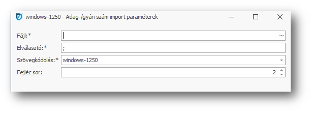 | Adag -/gyári szám importálás: | fájlból is beimportálhatjuk a gyári számokat a tételekhez. Gyári szám/adagszám használata esetén jelenik meg a művelet a szükséges tranzakciós bevitelekben. Az importáláshoz szükséges fájl szerkezetének a leírása a itt található: Adag-/gyári szám importálás CSV file szerkezete. |