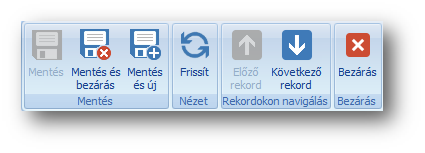 | Mentés és bezárás: | megnyomásával elmenthetjük az eddig felvitt adatokat és egyúttal bezáródik az adatrögzítő képernyő is. |