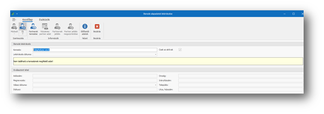 | Dun&Bradstreet műveletek / Alapadatok lekérdezése: | A Dun&Bradstreet adatbázisából lekérdezéseket indíthatunk a partner adószáma alapján. Az Alapadatok lekérdezése ingyenes, nem fogyaszt kreditet és nem igényel Dun&Bradstreet előfizetést sem. Az Alapadatok lekérdezéséhez Bisnode hozzáférést sem kell megadni. A művelet megjelenik az Áttekintő menüsorban is. Dun&Bradstreet beállítás-ok. Funkciók, ahonnan indíthatók a műveletek: Vevő, Szállító, |
