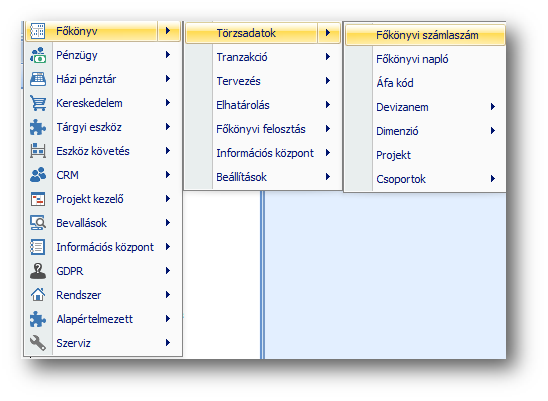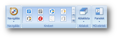 A menüben lévő funkciók indíthatók el a legördülő menüstruktúrából. Akkor érdemes használni, ha a bal oldali "Navigálás" ablakot bezártuk, hogy a jobb oldali részen az adatokat nagyobb területen láthassuk.