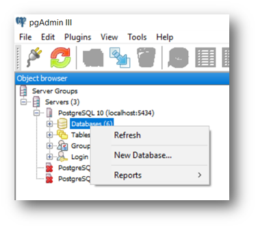 Új szerver telepítésekor ez tipikus. Lépjünk be a pgAdmin-ba és kézzel hozzuk létre ezt az adatbázist: