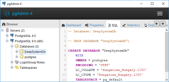 2) Hozzunk létre egy DeepSystemDb adatbázist