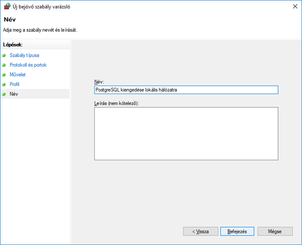 Adjuk meg a konkrét portot, amelyet nyitni akarunk. (5432 vagy 5433, vagy xxxx)