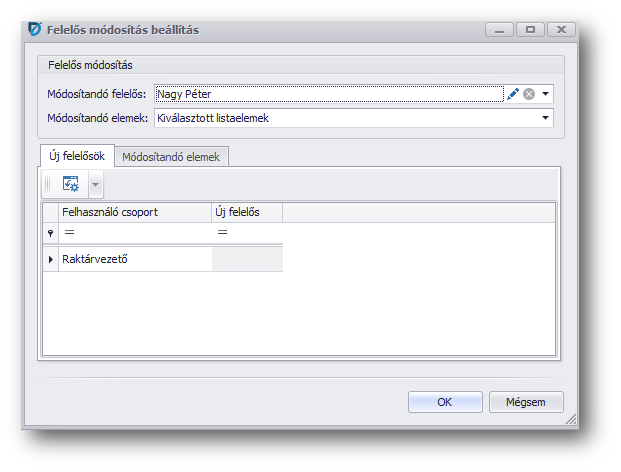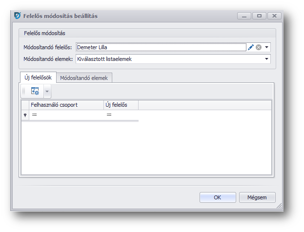 Módosítandó felelőst kell kiválasztanunk, majd azt, hogy az összes elemet vagy csak a kiválasztottakat szeretnék módosítani:
