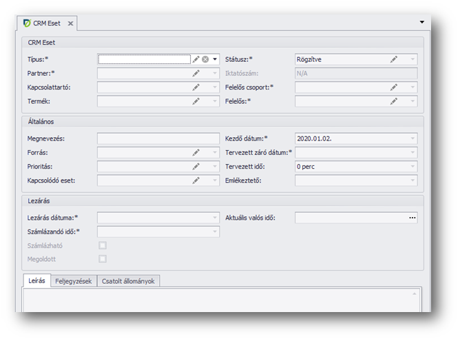 | Partner: | A CRM partnerek közül választhatjuk ki, hogy kihez tartozik ez az eset. |