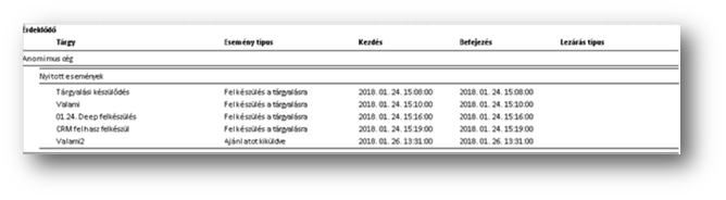 A CRM érdeklődők eseményeit tudjuk listában kinyomtatni: