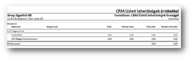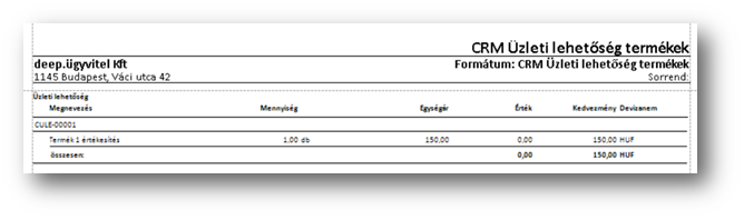 A CRM üzleti lehetőségeket tudjuk úgy listában kinyomtatni, hogy üzleti lehetőségre van csoportosítva a lista: