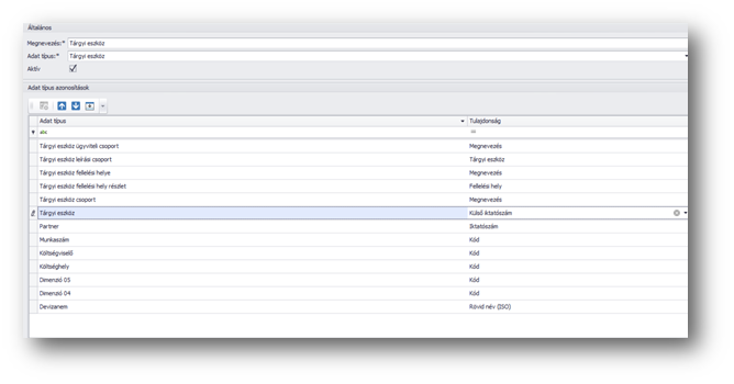 | Adattípus azonosítások terület: | A táblázatban adhatók meg mezőnként, hogy mely tulajdonság alapján történjen az azonosítás. |