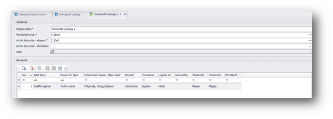 - Ütemezett import csomag részlet -