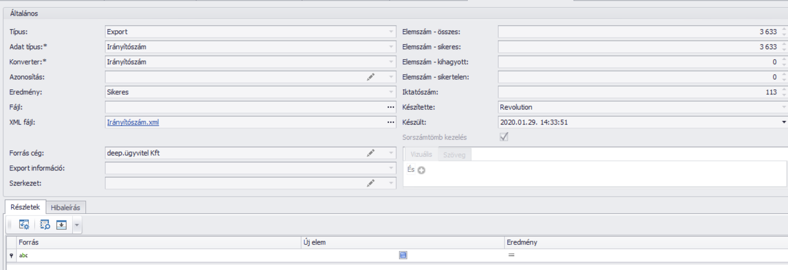 | Feltétel: | Az exportált adatok szűkítési lehetősége feltétel megadásával. |