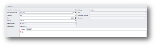 | Hónap/Negyedév: | A mező értéke attól függően kitölthető, hogy milyen időszakot adtunk meg. Itt kell jelölni, hogy adott évben mely hónap illetve negyedév adatexportját szeretnénk elkészíteni. |