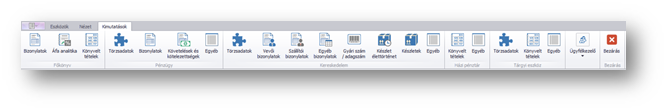 A funkcióból az összes deep.ügyvitel kimutatás elindítható. A menü sorban megjelenik az összes modul információs központjának kimutatás csoportja, amelyek közül választva, az abba tartozó kimutatások közül választhatunk.