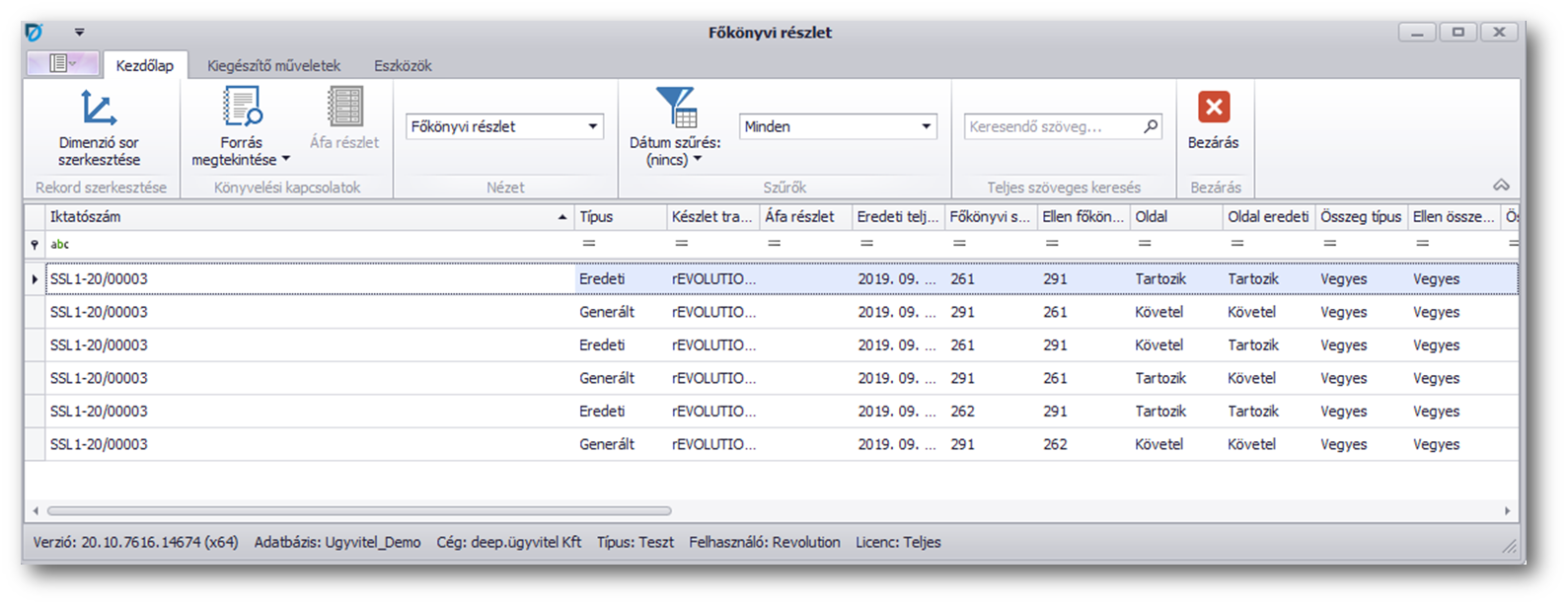 A "Főkönyv részlet" művelettel tudjuk megnézni a sor készletkönyvelését.