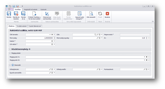 | Cikk: | Cikk választás, amely terméket a raktárak közt szállítani kívánunk. Kötelező mező. (TradeTransactionWarehouseOrderRow.) |