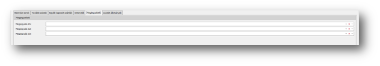 | Megjegyzés 01: | A sorhoz fűzött egyes számú megjegyzés. Szabad szövegesen is beírhatunk megjegyzést, de a … gombra kattintva választhatunk a Bizonylati megjegyzés funkcióban előre rögzített (sor)megjegyzések közül is. A kiválasztott előre definiált megjegyzés a kézzel már megadott megjegyzéshez kerül hozzáfűzésre. A mező melletti legördítő nyilacskára kattintva megtekinthetjük az összefűzött megjegyzést. A bizonylatra is kinyomtatásra kerül. A Megjegyzések lapfül, sormegjegyzések fejezetben tájékozódhatunk a további lehetőségekről. |