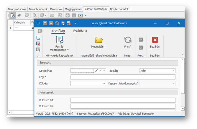 - Vevői ajánlat fejhez fájl, hivatkozás csatolás -