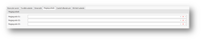 - Megjegyzések tab fül kitöltése -