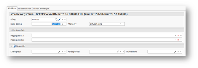 | Nettó összeg: | Előleg nettó összege. (TradeTransactionCustomerAdvanceInvoiceRow.) |