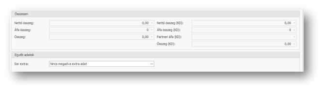 | Összeg (KD): | Bruttó sor összeg könyvelési devizában, amely értékkel történik a sorbeli tranzakció. |