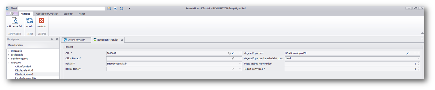 A készlet áttekintő lista soraiból dupla kattintással vagy "enter" -rel egy részletesebb áttekintő ablak válik elérhetővé.