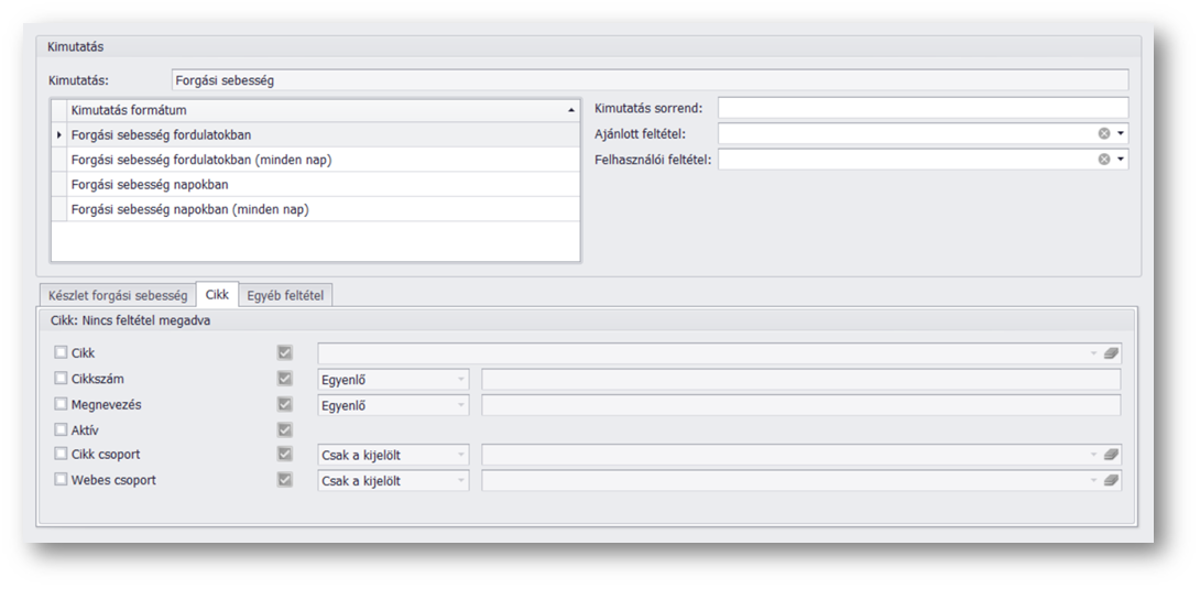 1. Forgási sebesség fordulatokban (minden nap): adott időszak minden napja figyelembevételre kerül a számoláskor, akkor is ha az adott napon az átlagkészlet 0 volt.
