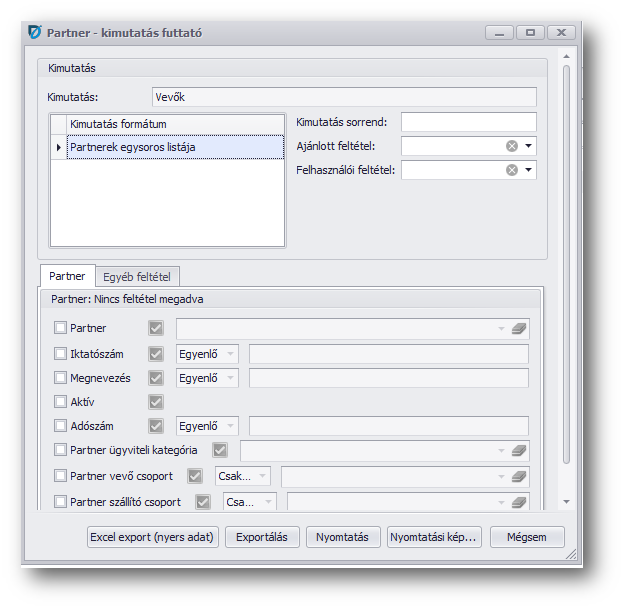 | Kimutatás formátum: | Partnerek egysoros listája |