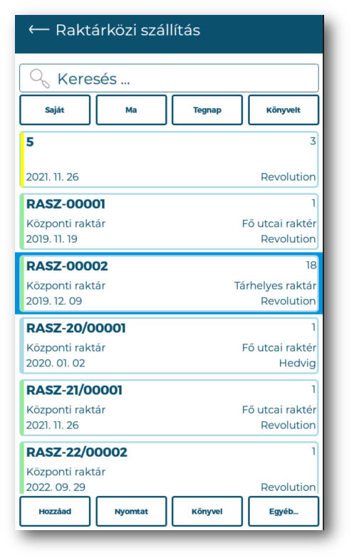 Raktárközi szállítólevél sor - Gyorsrögzítő