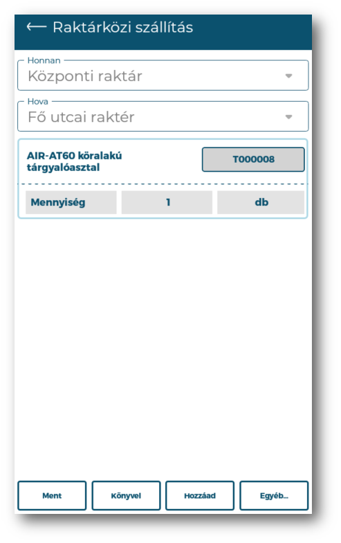 Forrás raktárt adhatjuk meg, ahonnan áthelyezzük a termékeket. |