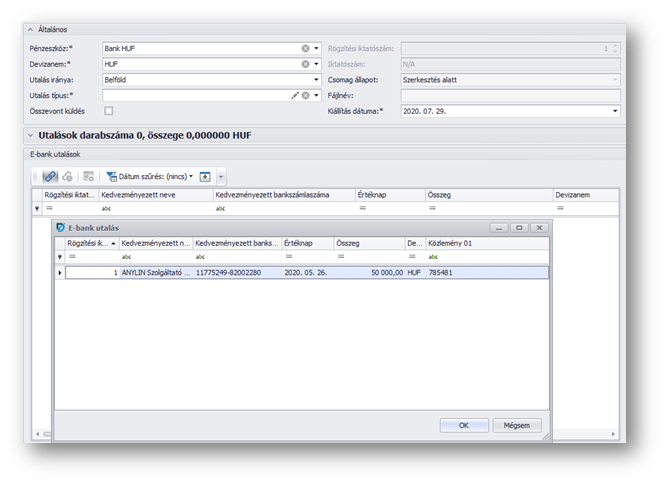 - Utalási csomag rögzítése -