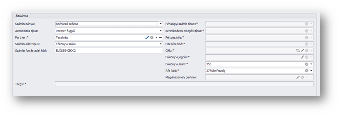 | Számla iránya: | Szótár adat létrehozható beérkező és kimenő számlához. Az irányt itt tudjuk beállítani. |