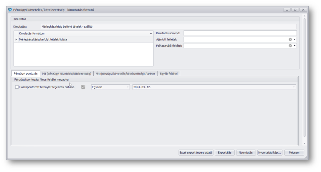 | Kimutatás: | Mérlegkészítés előtt befolyt szállítói tételek |