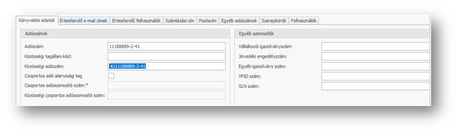 | Adószám: | Ügyviteli országra vonatkozó adószám megadása. |