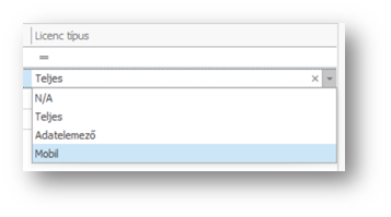| Típus: | A licenc típusa, lehet bérelt vagy vásárolt. |