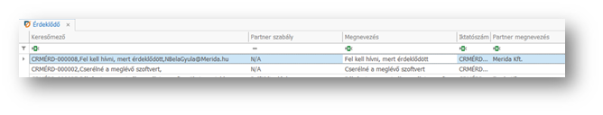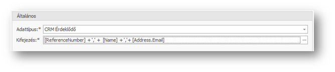 | Adattípus: | Cikk / CRM Érdeklődő / CRM Esemény / CRM Eset / CRM Kapcsolattartó / CRM Partner / CRM Üzleti lehetőség / Partner. Választás, hogy mely adattípus keresésére vonatkozzon a feltétel. |