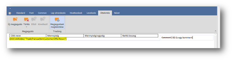 A kurzor pozíciója szerinti sorhoz megjegyzést fűzhetünk az "Új megjegyzés" művelettel a megjelenő kis Comment [n] buborékban. Az aktív kommentet a "Törlés" művelettel törölhetjük. Több komment esetén az Előző / Következő műveletpárral tudunk a kommentek között lépkedni. A "View Comments" művelettel az összes kommentet szerkesztő nézetben való láthatóságát tudjuk változtatni.
