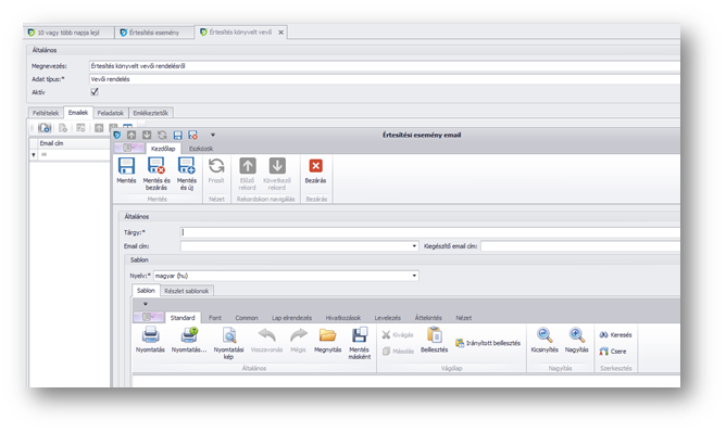 - Értesítésekhez kapcsolódó e-mail sablonok létrehozása -