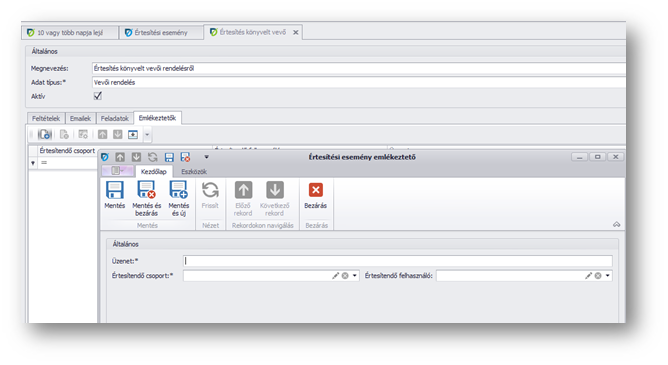 | Értesítendő csoport: | Mely csoport (felhasználó csoport) kapja az értesítést |