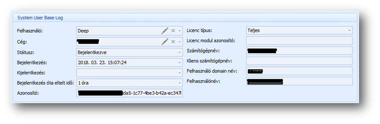 A funkcióban megjelenő táblázatban a programba bejelentkezett felhasználókról tájékozódhatunk. A táblázat soron duplaklikkelve részletesen láthatjuk a bejelentkezett user adatait (pl gépnév, domain stb.).