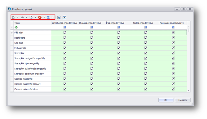 | Olvasás: | Engedélyezés / Tiltás. A beállítással az adattípushoz kizárólag olvasói jogot kap a felhasználó. |